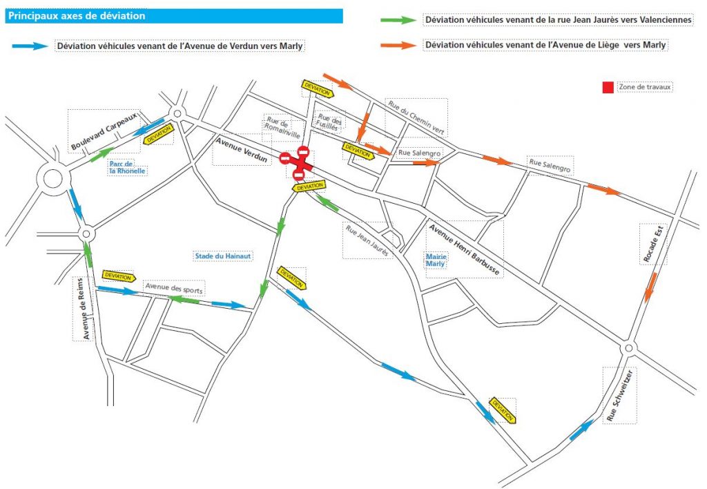 Fermeture du carrefour de Romainville 12 février 2024 Partager l'article sur Valenciennes Métropole réalise actuellement la requalification de l’avenue Barbusse à Marly.Dans le cadre de ces travaux, une fermeture du carrefour de Romainville sera mise en place du 26 février au 4 mars 2024 afin de permettre une intervention sur celui-ci.Ces travaux comprendront : La mise à niveau des tampons La reprise des bordures à chaque branche du carrefour Le rabotage de la chaussée La pose d’un nouveau tapis d’enrobés Accès aux commerces et habitations Accès des piétons aux commerces et habitations reste maintenu en permanence durant la durée des travaux Accès des véhicules uniquement aux garages des habitations dans la zone de travaux de 18h30 à 7h30 Interdiction de stationner dans la zone des travaux Maintien des livraisons aux commerces dans la zone d’emprise des travaux Début des travaux à 7h (hors WE et jour férié) Info travaux : Fermeture du carrefour de Romainville – Valenciennes Métropole (valenciennes-metropole.fr) Pour toute question relative à des gênes d’accessibilité aux habitations / services / garages : 03 27 096 096 A découvrir également Toutes les actualités Facebook 11 Déc 2025 [🎤 Star Academy 🎤] 𝐓𝐡𝐞́𝐨 𝐏. 𝐞𝐬𝐭 𝐮𝐧𝐞 𝐧𝐨𝐮𝐯𝐞𝐥𝐥𝐞 𝐟𝐨𝐢𝐬 𝐧𝐨𝐦𝐢𝐧𝐞́ ce... Accéder à la publication Facebook 11 Déc 2025 [🎨 J-1 ✨] 𝟑𝟕ᵉ 𝐒𝐚𝐥𝐨𝐧 𝐝𝐞𝐬 𝐌𝐞́𝐭𝐢𝐞𝐫𝐬 𝐝’𝐀𝐫𝐭 𝐚̀ 𝐕𝐚𝐥𝐞𝐧𝐜𝐢𝐞𝐧𝐧𝐞𝐬 ! ✨🎨 ... Accéder à la publication 10 Déc 2025 Mise à jour obligatoire de votre Dossier Unique Numérique (D... Chers Parents, Vos enfants fréquentent les activités de la Ville... Lire l'article