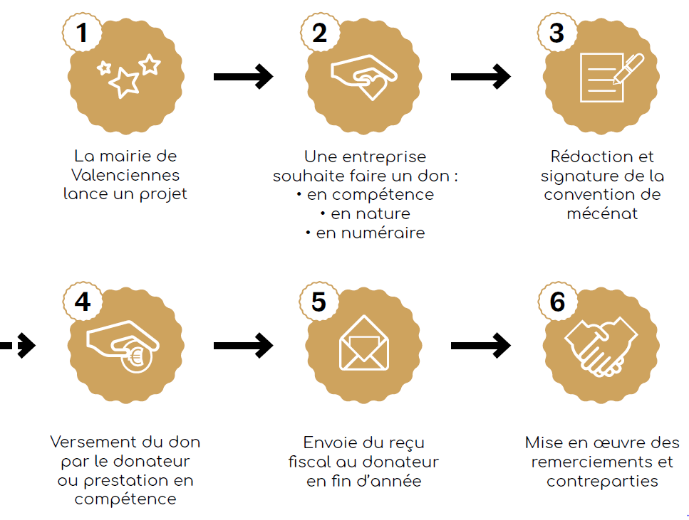 Mécenat Par votre mécénat et votre soutien pour les projets de la Mairie de Valenciennes, vous affirmez votre attachement au territoire et contribuez à son rayonnementSoutenir la ville vous tient à coeur ? Contactez-nous pour plus d’informations mecenat@ville-valenciennes.fr Qu’est ce que le mécénat ? Le mécénat est un « soutien matériel apporté, sans contrepartie directe de la part du bénéficiaire, à une œuvre ou à une personne pour l’exercice d’activités présentant un intérêt général » (Loi n°2003-709 du 1er août relative au mécénat). Le mécène peut être un particulier ou une entreprise.Pour la ville de Valenciennes, le mécénat est une opportunité de développer de nouvelles sources de financement innovantes et collaboratives pour conforter des actions ou développer de nouveaux projets d’intérêt général.L’appel à la générosité des mécènes constitue également un moyen de tisser de nouveaux liens avec les acteurs privés afin d’œuvrer ensemble au rayonnement de la ville. Consultez la charte éthique du mécénat Pourquoi s’engager à nos côtés ? Pour devenir acteur du développement territorial en soutenant des projets porteurs de sens Pour vous associer au développement culturel, touristique et économique de Valenciennes. Pour traduire concrètement votre engagement éthique et sociétal en faveur du territoire auprès de vos clients et salariés Les dons effectués au profit de projets d’intérêt général portés par une collectivité locale permettent aux donateurs, entreprises comme particuliers, de bénéficier de l’avantage fiscal lié au mécénat. Pour les entreprises (article 238 bis du Code général des impôts) réduction d’impôts à hauteur de 60 % du montant du don plafond de déductibilité annuel à hauteur de 0,5 % du chiffre d’affaires H.T. ou au choix, plafond de 20 000 euros forfaitaire. l’excédent peut être reporté sur 5 exercices comptables. Exemple : un don de 10 000 € coûte 4 000 €, après déduction fiscale, hors contreparties.Le don constitue pour l’entreprise une charge non déductible, compte tenu de la déduction fiscale. Les versements effectués au titre du mécénat ne sont donc pas déductibles pour la détermination du résultat imposable. Pour les particuliers (article 200 du Code général des impôts) réduction sur l’impôt sur le revenu à hauteur de 66 % du don plafond de déductibilité dans la limite de 20 % du revenu imposableLa déduction fiscale s’applique non seulement pour un don financier mais également pour un soutien en nature ou en compétences. Pour ces dons, la valorisation est alors celle du manque à gagner, du prix de revient pour l’entreprise, ou encore celle de la valeur en stock du bien. Les différentes formes de mécénat En numéraire : Apport financier En nature : Don à titre gracieux d’une prestation de services et de biens inscrits sur le registre des immobilisations ou des marchandises en compte stock. En compétence : Mise à disposition de salariés de l’entreprise à titre gracieux pour intervenir sur leur temps de travail Comment devenir mécène ? 1 – La mairie de Valenciennes lance un projet2 – Une entreprise souhaite faire un don : en compétence, en nature, en numéraire3 – Rédaction et signature de la convention de mécénat4 – Versement du don par le donateur ou prestation en compétence5 – Envoi du reçu fiscal au donateur en fin d’année6 – Mise en oeuvre des remerciements et contreparties