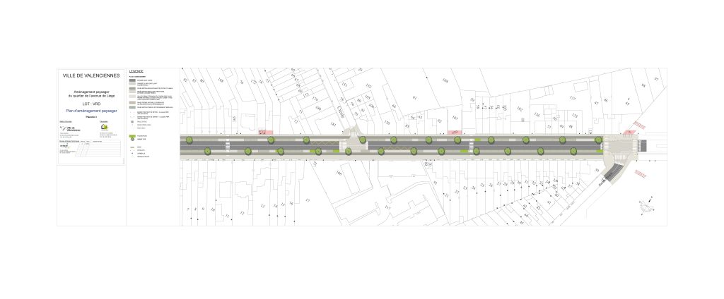 Avenue de Liège Pour tous renseignements concernant le chantier : liege-infotravaux@ville-valenciennes.fr Une entrée de ville agréable La Ville a engagé un grand projet de rénovation urbaine sur l’avenue de Liège et ses alentours. Objectif : rendre cette entrée de ville plus verte, plus moderne et plus agréable à vivre. Un projet ambitieux Avec un budget de 15 millions d’euros HT, la requalification porte sur 3,1 km de voiries : les avenues de Liège, Saint-Roch, Senac de Meilhan, Duchesnois ainsi que les rues Colart Creste, Pasteur, Saint-Martin et Saint-Michelet du Collège.Les travaux concernent aussi la rénovation de quatre grands carrefours, du parvis du cimetière Saint-Roch et de la placette de l’église Saint-Michel. Des aménagements pour tous Le projet prévoit : la modernisation des réseaux d’eau et d’assainissement, l’enfouissement des réseaux aériens, la création d’espaces verts et la plantation de nombreux arbres, des trottoirs élargis pour les piétons, 3 km de pistes cyclables, une circulation plus fluide, un stationnement réorganisé, des candélabres rénovés selon le plan lumière de la Ville, l’installation de la vidéoprotection. Un chantier en plusieurs étapes Les travaux ont commencé cet été, sur l’avenue de Liège côté Saint-Saulve. La première phase, dans le quartier Saint-Michel – le Rôleur, s’achève fin septembre 2025, soit six mois plus tôt que prévu.Les phases suivantes s’étalent jusqu’en 2029 et concernent une douzaine de rues supplémentaires, entièrement réhabilitées et végétalisées. Un quartier plus agréable À terme, le secteur de l’avenue de Liège offrira un nouveau visage, dans la continuité des autres grandes avenues de la Ville : un cadre de vie plus vert, plus moderne et mieux adapté aux besoins de tous. Chiffres clés 15 millions d’euros 3,1 km de voiries requalifiées Pour les 3 avenues 304 places de stationnement au lieu de 284 116 arbres + 1557m2 pour les plantations au lieu de 51 arbres et 0m2 d’espace vert 2,6kms de pistes cyclables au lieu de 0 + d’infos Pour tous renseignements concernant le chantier : liege-infotravaux@ville-valenciennes.fr Collecte des déchets, stationnement, accès commerces : Retrouvez les dernières informations en cliquant ici Documents à télécharger Télécharger Infos riverains : Travaux d’esthétique réseaux sur l’avenue de Liège Télécharger Infos travaux avenue de Liège section comprise entre la rue Sénac de Meilhan et le Boulevard Eisen Télécharger Verdissons nos murs Télécharger Amenagement des espaces publics section comprise entre la rue du marquis et l’avenue Sénac de Meilhan Télécharger Fermeture de l’avenue Senac de Meilhan Télécharger Travaux d’aménagement des espaces publics à compter du 6 janvier 2025 Télécharger Informations Stationnement Télécharger Requalification entre le boulevard Eisen et la rue du Rôleur Télécharger Travaux aménagement chemin des tulipes Télécharger Fin des travaux de requalification du quartier de l’Avenue de Liège Télécharger Les étapes du projet Du 15 novembre 2025 au 15 novembre 2025 Fin des travaux de l’Avenue de Liège Du 14 octobre 2024 au 14 octobre 2024 Requalification de l’Avenue de Liège, section comprise entre la rue sénac de Mailhan et le blvd Eisen Du 01 juillet 2024 au 31 août 2025 Requalification de l’Avenue de Liège, Saint-Roch, Sénac de Meilhan Du 29 avril 2024 au 29 avril 2024 Réunion publique Du 26 avril 2024 au 26 avril 2024 Réunion publique Plan d’aménagement de l’Avenue de Liège Cliquez sur l’image pour voir la version haute définition Juillet 2025 – Travaux Avenue de Liège default default default Mars 2025 – Travaux Avenue de Liège Projection Senac de Meilhan Avenue de Liège Saint Roch Avenue de Liège avant travaux