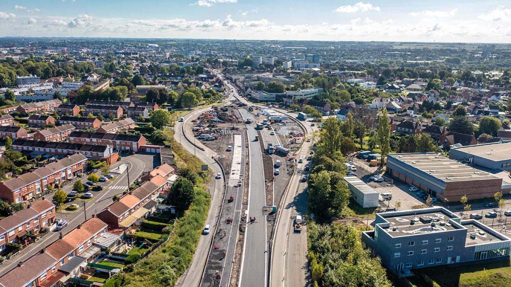 default default Le contournement Nord de Valenciennes est désormais ouvert ! Le contournement Nord de Valenciennes est désormais intégralement accessible à la circulation. L’inauguration s’est déroulée en présence de Christian Poiret, Président du Département du Nord, Valentin Belleval, Valérie Létard, Aymeric Robin, de nombreux élus ainsi que Stéphane Costaglioli, sous-préfet de Valenciennes. Après l’ouverture du premier tronçon en mars 2023, cette mise en service marque l’aboutissement de dix années de travaux. Pour Valenciennes Métropole et le Département du Nord, c’est une réalisation stratégique qui se concrétise au bénéfice de tous les habitants. Un investissement majeur 129 millions d’euros mobilisés par le Département du Nord et Valenciennes Métropole Un gain de temps considérable pour rejoindre l’autoroute Une circulation fluidifiée au quotidien Un atout essentiel pour le développement économique local Un nouvel axe de 5,2 km Dès aujourd’hui, chacun peut emprunter l’intégralité des 5,2 km de ce nouvel itinéraire, pensé pour améliorer la mobilité et renforcer l’attractivité de notre territoire. Chiffres clés 33000 véhicules empruntent quotidiennement l’entrée Nord de Valenciennes. 9 hectares le foncier libéré par le resserrement des bretelles autoroutières. Coût : 44,5 millions d’euros + d’infos Restructuration de l’Entrée Nord de Valenciennes – Valenciennes Métropole (valenciennes-metropole.fr) Documents à télécharger Phase 1 : décembre 2023 à fin 2024 – Restructuration de l’entrée Nord Télécharger Dossier de concertation préalable : Restructuration de l’entrée Nord Télécharger Fermeture de la rue Madagascar Télécharger Les étapes du projet Du 01 janvier 2026 au 31 juillet 2026 Fin de la 1ère phase des travaux Du 17 novembre 2025 au 17 novembre 2025 Réouverture de l’entrée Nord (depuis et vers Paris) Du 11 décembre 2023 au 31 décembre 2024 travaux aux abords de l’échangeur Du 04 décembre 2023 au 11 décembre 2023 Démarrage des travaux secteur de l’échangeur Du 14 novembre 2023 au 04 décembre 2023 installation de la base vie et la préparation de la zone travaux default default Avancement des travaux – plantation d’arbres et végétaux – Décembre 2024 Avancement des travaux – Septembre 2024 Avancement des travaux – Juillet 2024